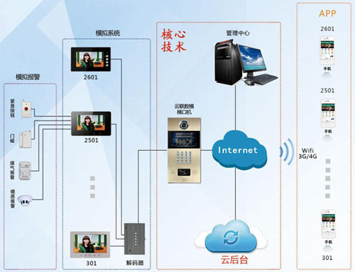云對(duì)講公網(wǎng)系統(tǒng)布線示意圖