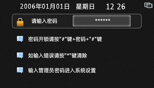3) 住戶密碼開鎖。默認(rèn)為禁用,需物業(yè)人員通過工程設(shè)置開啟權(quán)限才能使用,并且用戶的開鎖密碼默認(rèn)為無,需在室內(nèi)機(jī)上設(shè)置才能使用。操作方法:“*”+房號+“#”+“住戶開鎖密碼”+“#”,例如101住戶的開鎖密碼為123456,則輸入“*”+101+“#”+123456+“#”即可打開單元門。如圖3.3.3: