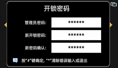 1) 設(shè)置公共開鎖密碼和公共挾持開鎖密碼,輸入正確的管理員密碼,可設(shè)置新的公共開鎖密碼和公共挾持開鎖密碼。注:兩個開鎖密碼關(guān)系為反序,且不可相同。系統(tǒng)出廠時默認(rèn)的公共開鎖密碼是012345,默認(rèn)挾持開鎖密碼為543210。假如將公共開鎖密碼設(shè)置為666666或121121,則公共挾持開鎖密碼與公共開鎖密碼相同,違反設(shè)置規(guī)則,提示設(shè)置失敗。