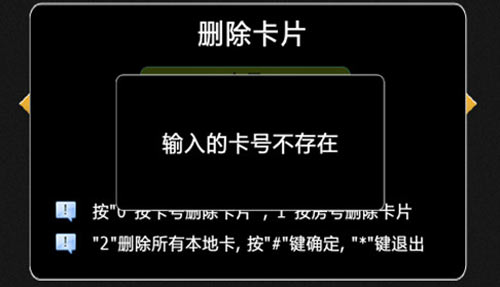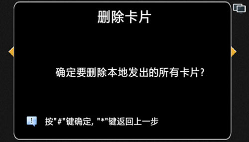 按“2”+“#”選擇刪除所有本地發(fā)出的卡片,提示確認(rèn)要刪除本地發(fā)出的所有卡片,按“#”鍵確認(rèn)刪除,按“*”鍵返回上一步,如圖4.12.8: