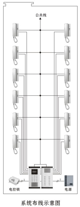 1. 系統(tǒng)采用總線制布線,必須增加解碼器,主干線為三芯線,入戶線為兩芯線無極性區(qū)分,布線簡單、施工方便;