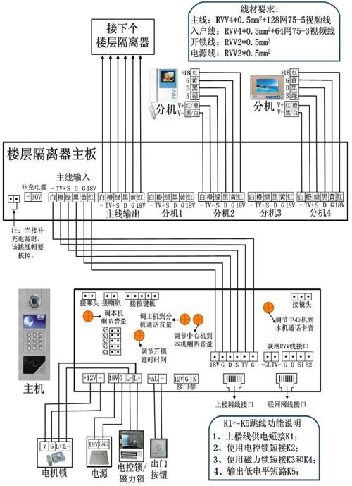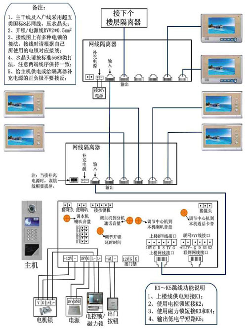 4、分機(jī)不能對(duì)講:檢查分機(jī)喇叭和各端口的連線是否正確;