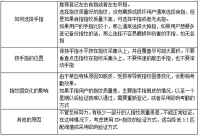 最終指紋還是無(wú)法識(shí)別的用戶,可將該指紋刷次再重新注冊(cè),或注冊(cè)另一枚手指,這樣的用戶在注冊(cè)時(shí)需要選擇使用質(zhì)量較好的指紋(指紋清晰等),盡量使用手指接觸指紋采集頭面積大一些,注冊(cè)完成后做一下對(duì)比測(cè)試,并建議多注冊(cè)幾枚備用指紋。